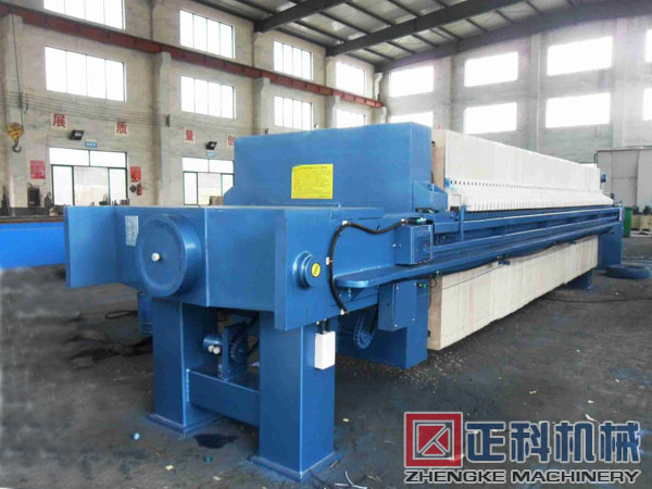 压滤机分为板框式压滤机、隔膜压滤机、厢式压滤机等。压滤机是一种间歇式过滤设备,用于各种悬浮液的固液分离,是依靠压紧装置将滤板压紧,再将悬浮液用泵压入滤室,通过滤布来达到将固体颗粒和液体颗粒分离的目的。压滤机作为固液分离设备,应用于工业生产已有悠久历史,它具有分离效果好、适应性广,特别对于粘细物料的分离,有其独特的优越性。板框式压滤机在欧美早期的污泥脱水项目上应用很多,板框压滤机的结构较简单,操作容易,稳定,过滤面积选择范围灵活,单位过滤面积占地较少,过滤推动力大,所得滤饼含水率低,对物料的适应性强,适用于各种污泥。压滤机将带有滤液通路的滤板和滤框平行交替排列,每组滤板和滤框中间夹有滤布,用压紧端把滤板和滤框压紧,使滤板与滤板之间构成一个压滤室。污泥从进料口流入,水通过滤板从滤液出口排出,泥饼堆积在框内滤布上,滤板和滤框松开后泥饼就很容易剥落下来,具有操作简单,滤饼含固率高,适用性强等优点。