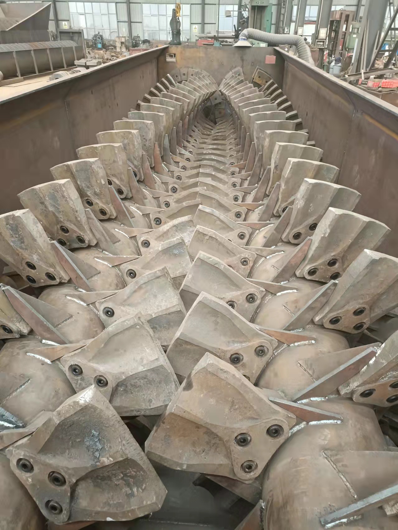 2.强力双螺旋洗石机叶片装配方案使用螺旋线性排列方式,可以有效的减少石料进入设备之后卡机的现场。